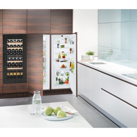 De Liebherr EWTgb 2383 met TipOpen deurtechniek is ideaal in gebruik, ook in greeploze keukens. Maximaal 33 flessen rode én witte wijnen op perfecte drinktemperatuur bewaren dankzij 2 apart regelbare zones. Inbouwmodel met beukenhouten plateaus op telescooprails, dimbare LED-verlichting en SoftSystem deursluiting.