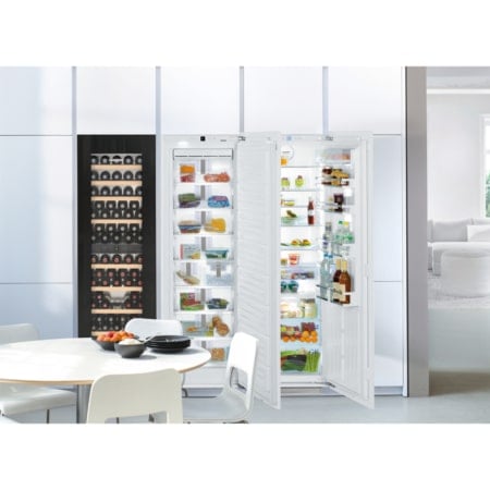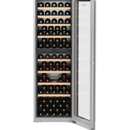 De Liebherr EWTgb 3583 met TipOpen deurtechniek is ideaal in gebruik, ook in greeploze keukens. Maximaal 83 flessen rode én witte wijnen op perfecte drinktemperatuur bewaren dankzij 2 apart regelbare zones. Inbouwmodel met beukenhouten plateaus op telescooprails, dimbare LED-verlichting en SoftSystem deursluiting.