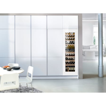 De Liebherr EWTgw 3583 met TipOpen deurtechniek is ideaal in gebruik, ook in greeploze keukens. Maximaal 83 flessen rode én witte wijnen op perfecte drinktemperatuur bewaren dankzij 2 apart regelbare zones. Inbouwmodel met beukenhouten plateaus op telescooprails, dimbare LED-verlichting en SoftSystem deursluiting.