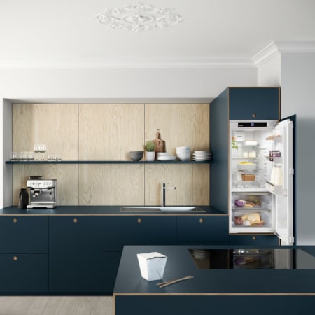 Liebherr IRBd 4150 Prime. Nettocapaciteit koelkast: 191 l, Klimaatklasse: SN-T, Geluidsniveau: 35 dB. Aantal planken koelkast: 5, Aantal groente lades: 2. Soort lamp: LED. Deurscharnieren: Rechts. Jaarlijks energieverbruik: 113,8 kWu, Energie-efficiëntieklasse: D. Gewicht: 47,1 kg. Kleur van het product: Wit
