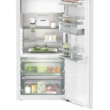 Liebherr IRBd 4151 Prime. Apparaatplaatsing: Ingebouwd, Kleur van het product: Wit, Deurscharnieren: Rechts. Totale nettocapaciteit: 175 l, Klimaatklasse: SN-T, Geluidsemissieklasse: B. Nettocapaciteit koelkast: 159 l, Soort lamp: LED, Koelkast temperatuurbereik: 3 – 9 °C. Vriezer positie: Boven, Nettocapaciteit vriezer: 16 l, Vriescapaciteit: 2 kg/24u. Energie-efficiëntieklasse: D, Jaarlijks energieverbruik: 147,5 kWu, Energie-efficiëntieschaal: A tot G
