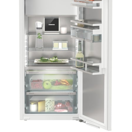 Liebherr IRBd 4171 Peak. Apparaatplaatsing: Ingebouwd, Kleur van het product: Wit, Deurscharnieren: Rechts. Totale nettocapaciteit: 174 l, Klimaatklasse: SN-T, Geluidsemissieklasse: B. Nettocapaciteit koelkast: 158 l, Soort lamp: LED, Koelkast temperatuurbereik: 3 – 9 °C. Vriezer positie: Boven, Nettocapaciteit vriezer: 16 l, Vriescapaciteit: 2 kg/24u. Energie-efficiëntieklasse: D, Jaarlijks energieverbruik: 147,5 kWu, Energie-efficiëntieschaal: A tot G