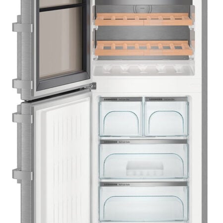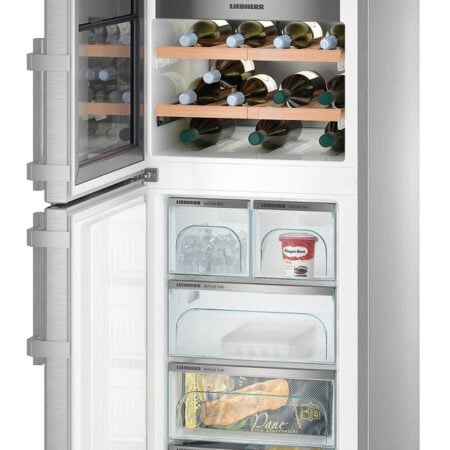Liebherr SWTNes 4285. Totale nettocapaciteit: 289 l. Deurscharnieren: Links, Type beeldscherm: TFT. Klimaatklasse: SN-T, Geluidsniveau: 37 dB. Nettocapaciteit koelkast: 156 l, No Frost (koelkast), Aantal planken koelkast: 5. Nettocapaciteit vriezer: 133 l, Vriescapaciteit: 9 kg/24u, No Frost (vriezer). Energie-efficiëntieklasse: D, Jaarlijks energieverbruik: 187 kWu. Kleur van het product: Roestvrijstaal