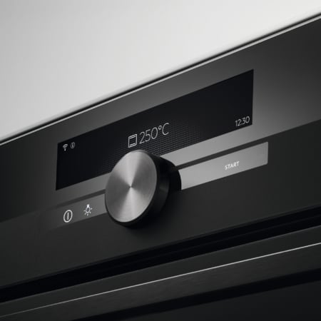 AEG KMK968000T 944066784. Soort oven: Elektrische oven, Totaal vermogen van de oven: 3000 W, Oven vermogen: 3000 W. Kleur van het product: Zwart, Soort bediening: Draaiknop, Touch, Binnenmateriaal: Emaille. Soort klok: Elektronisch, Type timer: Digitaal, Timermodi: Einde kooktijd, Timer. AC-ingangsspanning: 220-240 V, AC-ingangsfrequentie: 50 Hz, Stroom: 16 A. Soort lamp: Halogeen