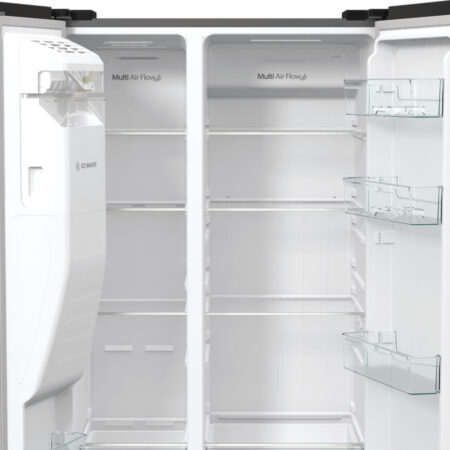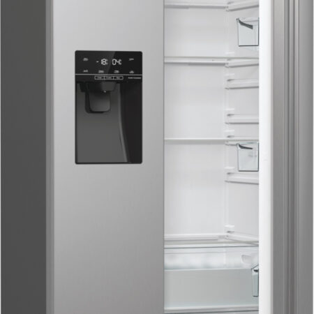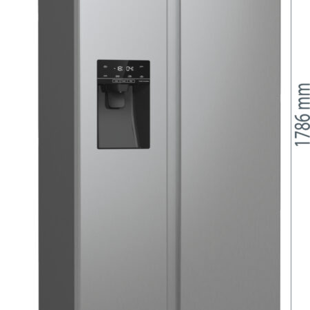 Hisense RS5P535NPCE. Apparaatplaatsing: Vrijstaand, Productontwerp: Amerikaanse deur, Kleur van het product: Roestvrijstaal. Totale nettocapaciteit: 566 l, Klimaatklasse: SN-T, Geluidsemissieklasse: C. Nettocapaciteit koelkast: 376 l, Soort lamp: LED. Nettocapaciteit vriezer: 190 l, Vriezer positie: Ernaast, Vriescapaciteit: 12 kg/24u. Energie-efficiëntieklasse: E, Jaarlijks energieverbruik: 324 kWu, Energie-efficiëntieschaal: A tot G
