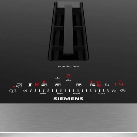 Siemens iQ500 ED807FQ25E. Kleur van het product: Zwart, Apparaatplaatsing: Ingebouwd, Breedte kookplaat: 80 cm. Soort bediening: Touch, Controle positie: Boven voorzijde, Type timer: Digitaal. Afzuigmethode: Luchtafvoer, Maximale afzuigcapaciteit: 500 m³/uur, Geluidsniveau: 42 dB. Aangesloten lading (elektrisch): 7400 W, Energie-efficiëntieschaal: A+++ tot D, AC-ingangsspanning: 220-240 / 380-415 V. Breedte: 792 mm, Diepte: 512 mm, Hoogte: 227 mm