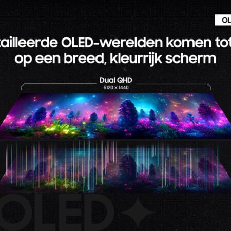 OLED-technologie biedt een breder kleurenspectrum en een levendig beeld voor een meeslepende game-ervaring. Je content komt tot leven op het Dual QHD (5120 x 1440) resolutie-scherm, met een ongekende helderheid en precisie.