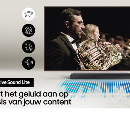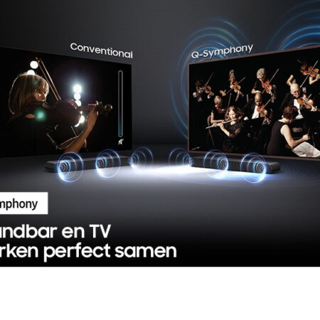 Dankzij Q-Symphony werkt jouw Samsung Soundbar in perfecte harmonie met je Samsung TV. Dit zorgt voor een ongekende akoestische ervaring, zodat je van content kunnen genieten als nooit tevoren.