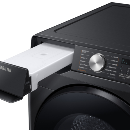 Samsung DV16T8520BV, Vrijstaand, Voorbelading, Zwart, Draaiknop, Links, LED