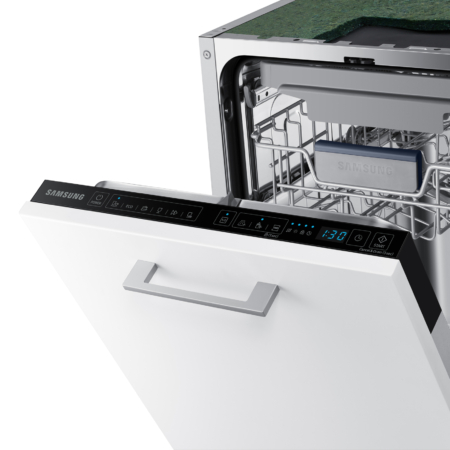 Samsung DW50R4050BB, Volledig ingebouwd, Slimline (45 cm), Wit, Blauw, Lade, Roestvrijstaal