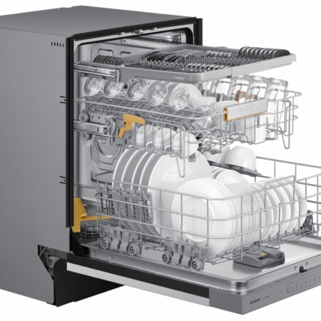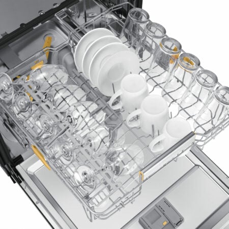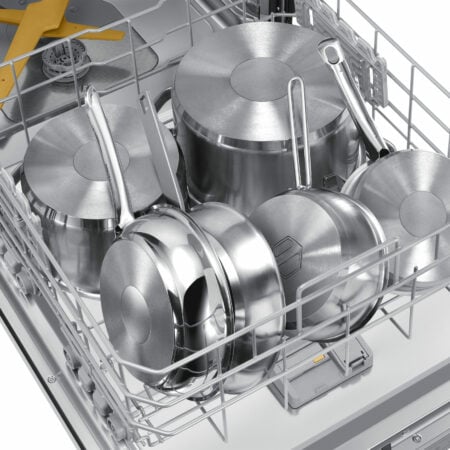 De vaatwasser draait zijn programma’s efficiënt en met weinig geluid dankzij de energiezuinige Inverter-motor die frictie vermindert.