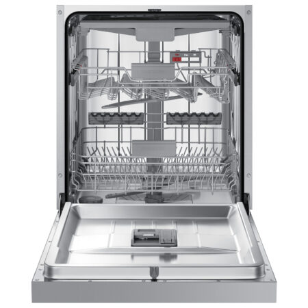 Samsung DW60CG552USREG. Apparaatplaatsing: Vrijstaand, Productafmeting: Volledige grootte (60 cm), Deurkleur: Zilver. Aantal couverts: 14 couverts, Geluidsemissieklasse: B, Geluidsniveau: 44 dB. Voetenverstelling: 6 cm. Energie-efficiëntieklasse: D, Waterconsumptie per cyclus: 10,5 l, Energieverbruik per 100 cycli: 85 kWu. Breedte: 598 mm, Diepte: 570 mm, Hoogte: 815 mm
