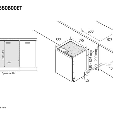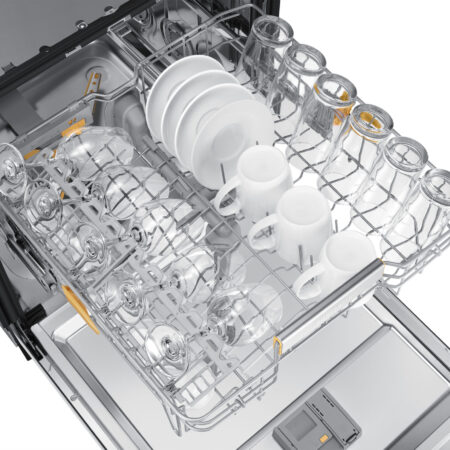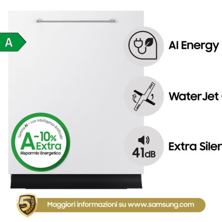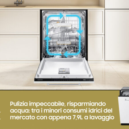 Samsung DW60CG880B00ET. Apparaatplaatsing: Volledig ingebouwd, Productafmeting: Volledige grootte (60 cm), Soort bediening: Touch. Aantal couverts: 14 couverts, Geluidsemissieklasse: B, Geluidsniveau: 43 dB. Energie-efficiëntieklasse: A, Waterconsumptie per cyclus: 7,9 l, Energieverbruik per 100 cycli: 49 kWu. Breedte: 595 mm, Diepte: 552 mm, Hoogte: 815 mm. Breedte verpakking: 670 mm, Diepte verpakking: 660 mm, Hoogte verpakking: 882 mm