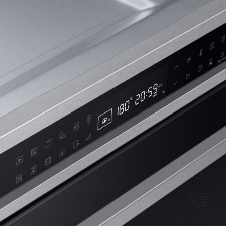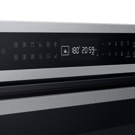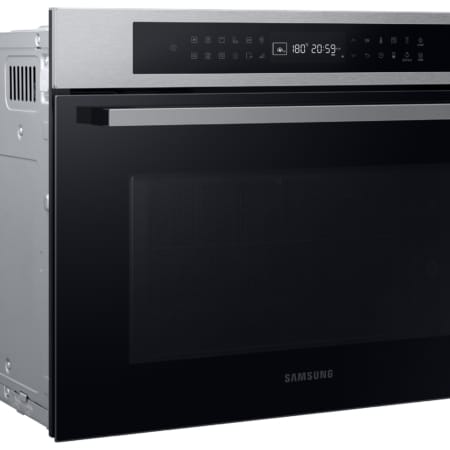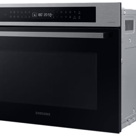 Samsung NQ5B4363GBS. Grootte oven: Middelmaat, Soort oven: Elektrische oven, Totale binnen capaciteit (ovens): 50 l. Apparaatplaatsing: Ingebouwd, Kleur van het product: Zwart, Roestvrijstaal, Soort bediening: Touch. Soort klok: Elektronisch, Type timer: Digitaal. AC-ingangsspanning: 230 V, AC-ingangsfrequentie: 50 Hz. Soort lamp: Halogeen, Vermogen lamp: 40 W