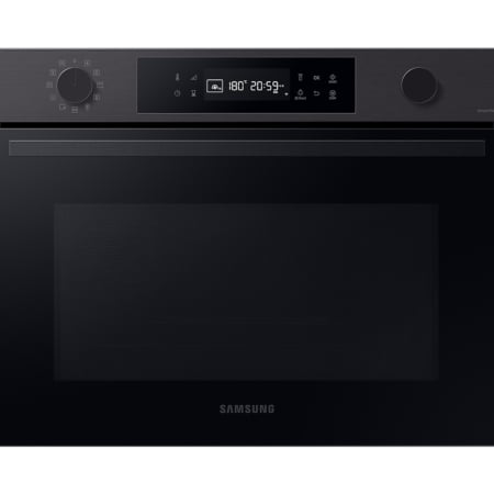 Samsung NQ5B4553FBB. Grootte oven: Middelmaat, Soort oven: Elektrische oven, Totale binnen capaciteit (ovens): 50 l. Apparaatplaatsing: Ingebouwd, Kleur van het product: Zwart, Roestvrijstaal, Soort bediening: Draaiknop, Touch. Soort klok: Elektronisch, Type timer: Digitaal. Aantal lampen: 1 lampen, Soort lamp: Halogeen, Verlichtingslocatie: Achter links. Installatie compartiment breedte: 56 cm, Installatie compartiment diepte: 54,9 cm, Installatie compartiment hoogte: 44,6 cm