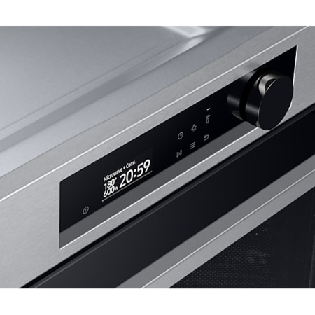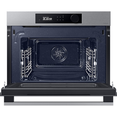 Samsung NQ5B5763DBS. Grootte oven: Middelmaat, Soort oven: Elektrische oven, Totale binnen capaciteit (ovens): 50 l. Apparaatplaatsing: Ingebouwd, Kleur van het product: Zwart, Roestvrijstaal, Soort bediening: Draaiknop, Touch. Soort klok: Elektronisch, Type timer: Digitaal. AC-ingangsspanning: 230 V, AC-ingangsfrequentie: 50 Hz. Aantal lampen: 1 lampen, Soort lamp: Halogeen, Verlichtingslocatie: Achter links