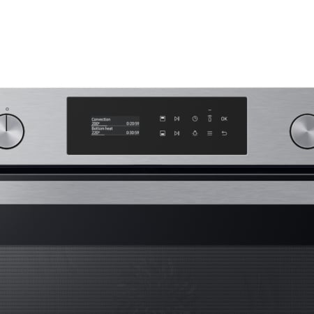 Samsung NV75A6549RS. Grootte oven: Middelmaat, Soort oven: Elektrische oven, Totale binnen capaciteit (ovens): 75 l. Apparaatplaatsing: Ingebouwd, Kleur van het product: Roestvrijstaal, Soort bediening: Draaiknop. Soort klok: Elektronisch, Type timer: Digitaal, Timermodi: Einde kooktijd. Energie-efficiëntieklasse: A+, Energieverbruik (conventioneel): 1,05 kWu, Energieverbruik (geforceerde convectie): 0,71 kWu. Soort lamp: Halogeen, Verlichtingslocatie: Zijkant, Boven, Vermogen lamp: 25 W