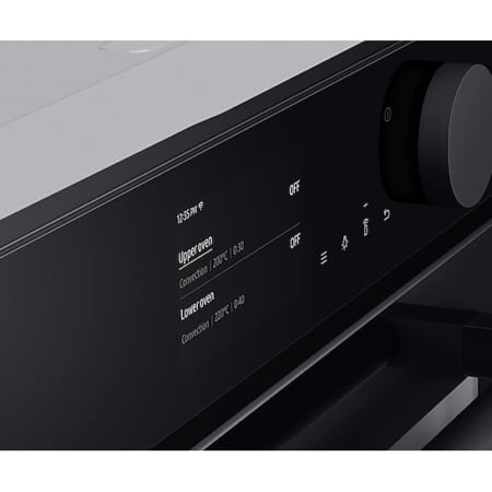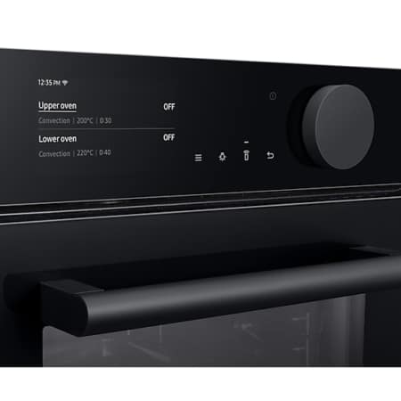Samsung NV75T8579RK. Grootte oven: Middelmaat, Soort oven: Elektrische oven, Totale binnen capaciteit (ovens): 75 l. Apparaatplaatsing: Ingebouwd, Kleur van het product: Zwart, Soort bediening: Draaiknop, Touch. Soort klok: Elektronisch, Type timer: Digitaal, Bedieningsapps ondersteund: Samsung SmartThings. Energie-efficiëntieklasse: A+, Energieverbruik (conventioneel): 1,05 kWu, Energieverbruik (geforceerde convectie): 0,71 kWu. Aantal lampen: 2 lampen, Soort lamp: Halogeen, Verlichtingslocatie: Zijkant