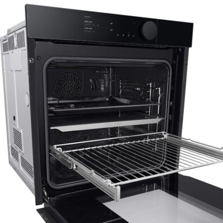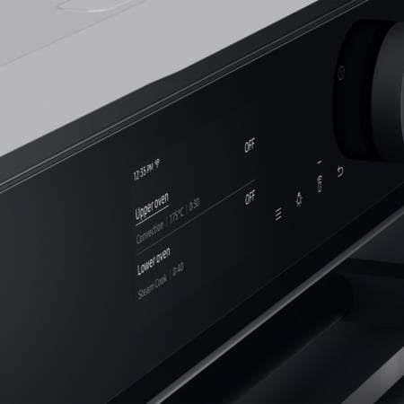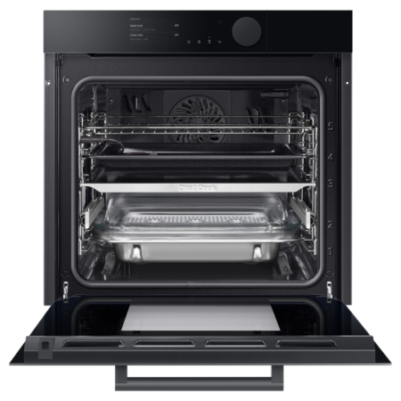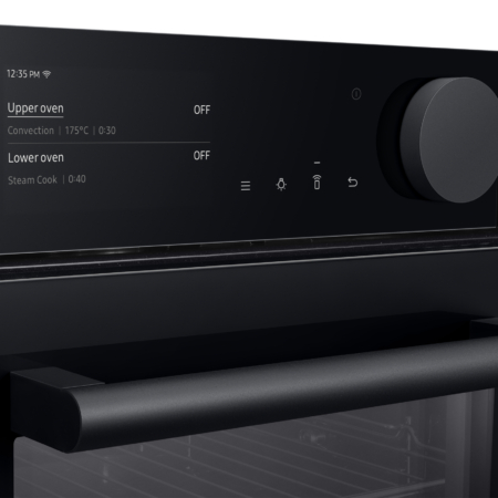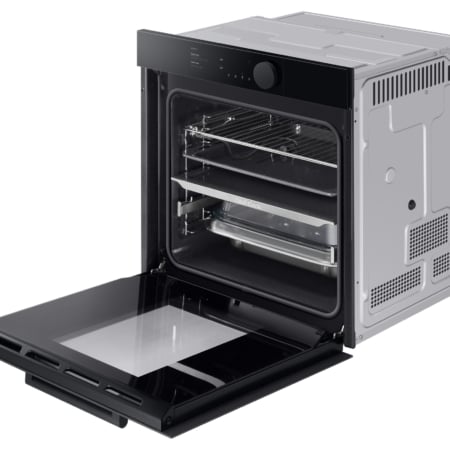 Samsung NV75T8979RK. Grootte oven: Middelmaat, Soort oven: Elektrische oven, Totale binnen capaciteit (ovens): 75 l. Apparaatplaatsing: Ingebouwd, Kleur van het product: Zwart, Soort bediening: Draaiknop, Touch. Soort klok: Elektronisch, Type timer: Digitaal. Energie-efficiëntieklasse: A+, Energieverbruik (conventioneel): 1,05 kWu, Energieverbruik (geforceerde convectie): 0,71 kWu. Aantal lampen: 2 lampen, Soort lamp: Halogeen, Verlichtingslocatie: Zijkant, Boven