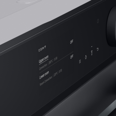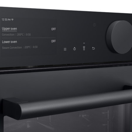 Samsung NV75T9879CD. Grootte oven: Middelmaat, Soort oven: Elektrische oven, Totale binnen capaciteit (ovens): 75 l. Apparaatplaatsing: Ingebouwd, Kleur van het product: Grafiet, Grijs, Soort bediening: Draaiknop, Touch. Soort klok: Elektronisch, Type timer: Digitaal, Timermodi: Einde kooktijd. Energie-efficiëntieklasse: A+, Energieverbruik (conventioneel): 1,05 kWu, Energieverbruik (geforceerde convectie): 0,71 kWu. Aantal lampen: 2 lampen, Soort lamp: Halogeen, Verlichtingslocatie: Zijkant, Boven