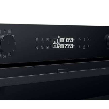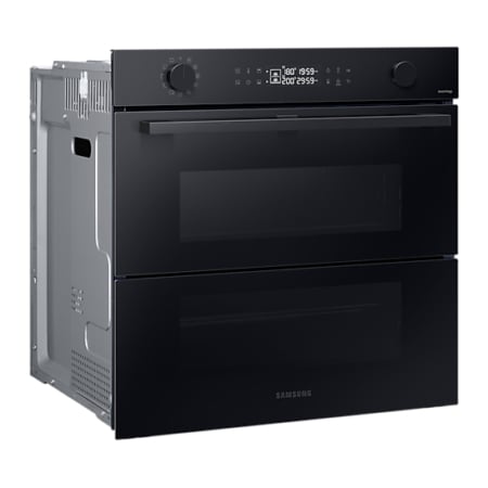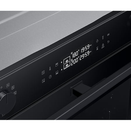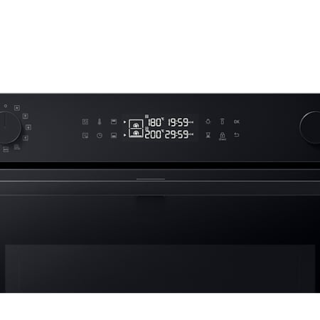 Samsung NV7B4550VAK. Grootte oven: Groot, Soort oven: Elektrische oven, Totale binnen capaciteit (ovens): 76 l. Apparaatplaatsing: Ingebouwd, Kleur van het product: Zwart, Soort bediening: Draaiknop, Touch. Soort klok: Elektronisch, Type timer: Digitaal. Energie-efficiëntieklasse: A+, Energieverbruik (conventioneel): 1,05 kWu, Energieverbruik (geforceerde convectie): 0,71 kWu. Aantal lampen: 2 lampen, Soort lamp: Halogeen, Verlichtingslocatie: Zijkant, Boven