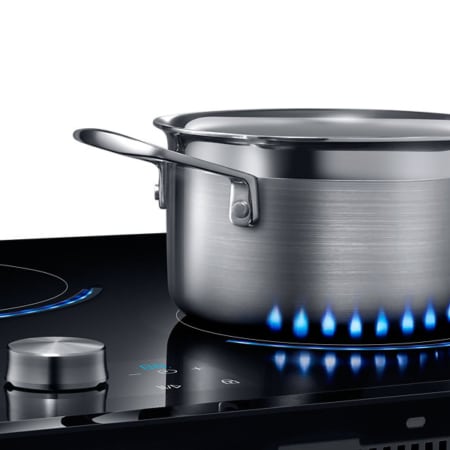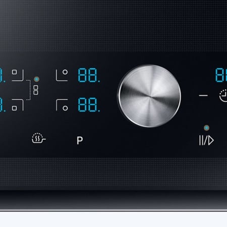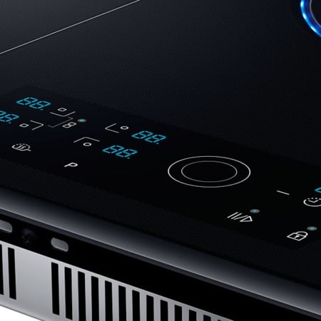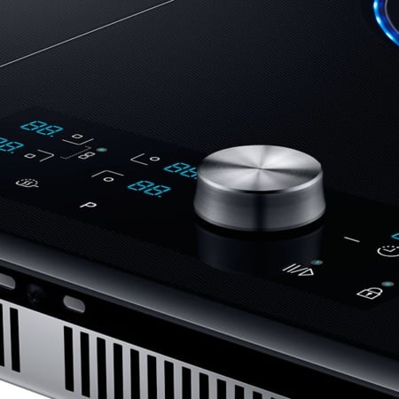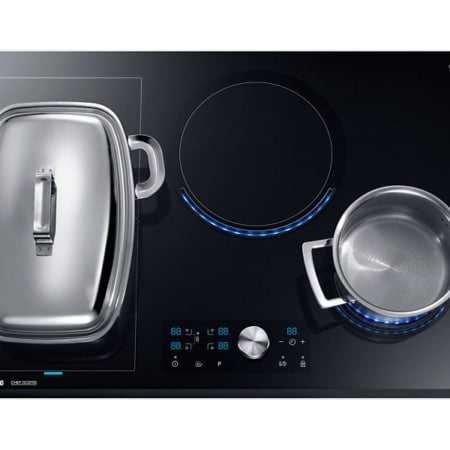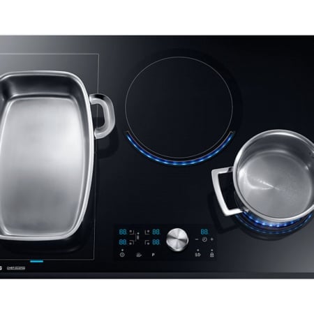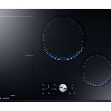 Samsung NZ84J9770EK. Kleur van het product: Roestvrijstaal, Apparaatplaatsing: Ingebouwd, Type kookplaat: Inductiekookplaat zones. Sudder brander/kookzone: 1200 W, Normale brander/kookzone: 2200 W, Grote brander/kookzone: 3300 W. Soort bediening: Draaiknop, Touch, Controle positie: Boven voorzijde, Type beeldscherm: LED. Aangesloten lading (elektrisch): 7000 W. Breedte: 800 mm, Diepte: 520 mm, Hoogte: 56 mm