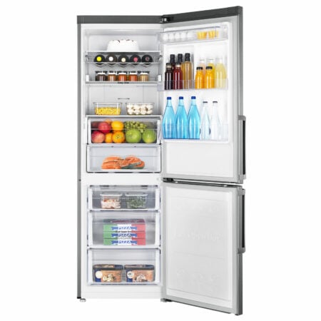 SamsungRB33J3315SA. Totale nettocapaciteit: 339 l. Deurscharnier: rechts. Klimaatklasse: SN-T, Geluidsniveau: 37 dB. Nettocapaciteit koelkast: 231 l, No Frost (koelkast), Multi-Airflow systeem (koelkast), Binnenverlichting koelkast, Aantal planken/manden koelkast: 4. Nettocapaciteit vriezer: 108 l, Vriescapaciteit: 13 kg/24u, Nee Vorst (vriezer). Energie-efficiëntieklasse: E, Jaarlijks energieverbruik: 253 kWh. Productkleur: metallic