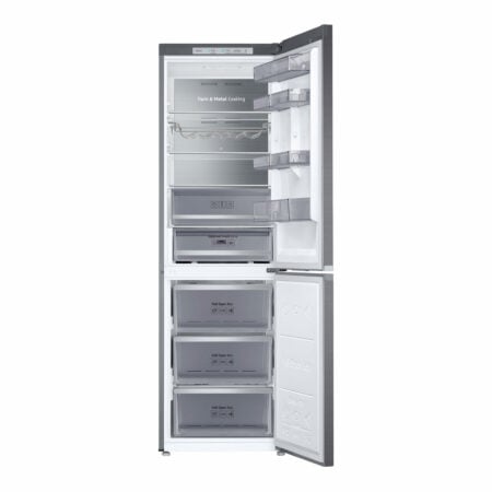 Samsung RB33R8737S9. Totale nettocapaciteit: 346 l. Deurscharnieren: Rechts. Klimaatklasse: SN-T, Geluidsniveau: 38 dB. Nettocapaciteit koelkast: 224 l, Koelkast binnenverlichting, Aantal planken koelkast: 3, Aantal groente lades: 2. Nettocapaciteit vriezer: 122 l, Vriescapaciteit: 13 kg/24u, No Frost (vriezer). Energie-efficiëntieklasse: E, Jaarlijks energieverbruik: 258 kWu. Kleur van het product: Geborsteld staal