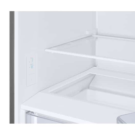 De volledige No Frost-technologie van Samsung zorgt voor een constante circulatie van koele lucht en verwijdert systematisch overtollig vocht uit de koelkast. Hierdoor zetten ijs en rijp zich niet af op muren of producten. Voedsel blijft langer vers en voedzaam, en het is gemakkelijker schoon te houden – zonder te ontdooien.