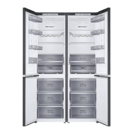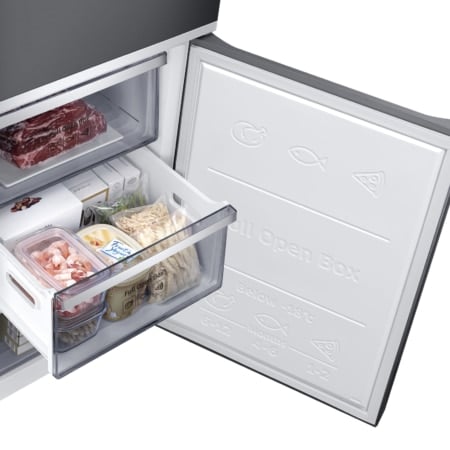 Samsung RB36R872PB1. Totale nettocapaciteit: 355 l. Deurscharnieren: Rechts. Klimaatklasse: ST-T, Geluidsniveau: 38 dB. Nettocapaciteit koelkast: 245 l, No Frost (koelkast), Multi-luchtwegsysteem (koelkast), Aantal planken koelkast: 3. Nettocapaciteit vriezer: 110 l, Vriescapaciteit: 13 kg/24u. Vers zone compartiment. Energie-efficiëntieklasse: E, Jaarlijks energieverbruik: 262 kWu. Kleur van het product: Zwart