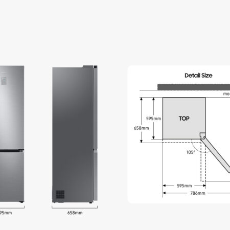 Geef je keuken een stijlvolle look. Hij heeft een strak en modern design en een standaard diepte van 600 mm, die perfect aansluit bij je bestaande keukenkasten. De koelkast heeft platte deuren en een strakke achterkant. De minimalistische binnenkant heeft een verborgen display, een plat flessenplateau en grijze vakken voor etenswaren[12].