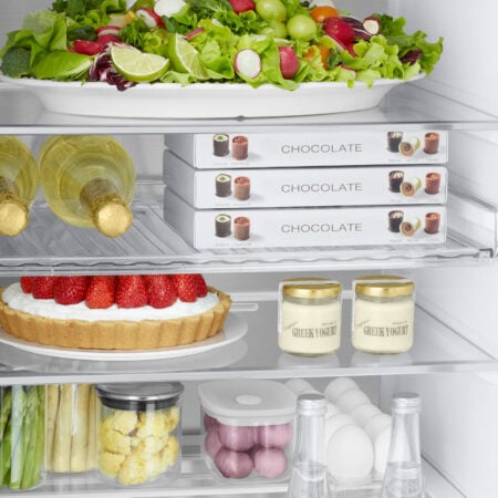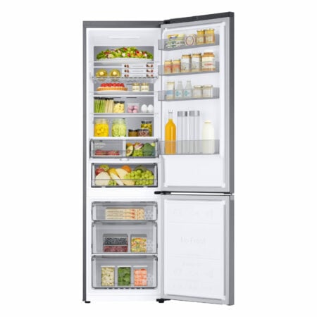 Samsung RB38C775CSR. Deurscharnieren: Rechts. Klimaatklasse: SN-T, Geluidsniveau: 35 dB. No Frost (koelkast), Koelkast binnenverlichting, Aantal planken koelkast: 4, Aantal groente lades: 2. Vriescapaciteit: 8 kg/24u, No Frost (vriezer). Vers zone compartiment. Energie-efficiëntieklasse: C, Jaarlijks energieverbruik: 169 kWu. Kleur van het product: Roestvrijstaal