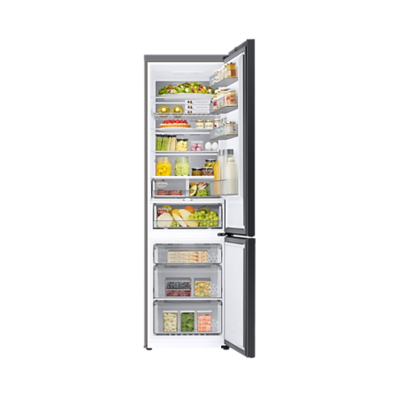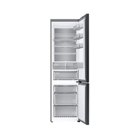 Samsung RB38C7B5C12/EU. Deurscharnieren: Rechts. Klimaatklasse: SN-T, Geluidsniveau: 35 dB. Nettocapaciteit koelkast: 276 l, No Frost (koelkast), Koelkast binnenverlichting, Aantal planken koelkast: 4, Aantal groente lades: 2. Nettocapaciteit vriezer: 114 l, Vriescapaciteit: 8 kg/24u, No Frost (vriezer). Energie-efficiëntieklasse: C, Jaarlijks energieverbruik: 169 kWu. Kleur van het product: Wit