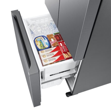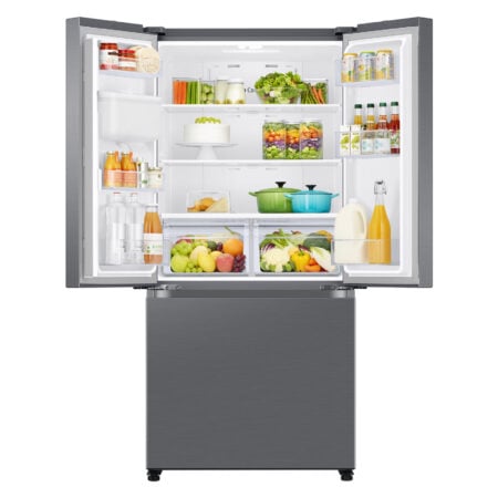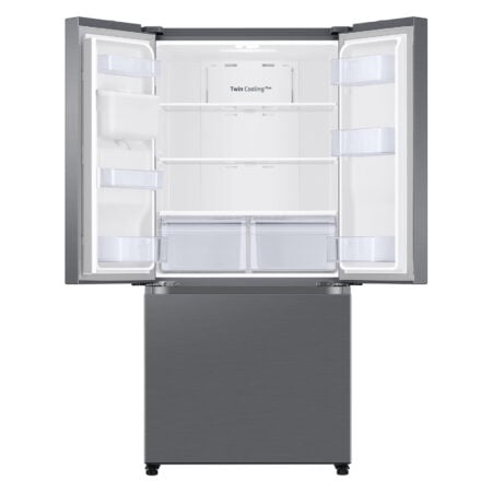 Samsung RF50C530ES9. Apparaatplaatsing: Vrijstaand, Productontwerp: Frans deur, Kleur van het product: Roestvrijstaal. Totale nettocapaciteit: 495 l, Klimaatklasse: ST, Geluidsemissieklasse: C. Nettocapaciteit koelkast: 330 l, Soort lamp: LED. Nettocapaciteit vriezer: 165 l, Vriezer positie: Onder, Vriescapaciteit: 8 kg/24u. Energie-efficiëntieklasse: E, Jaarlijks energieverbruik: 301 kWu, Energie-efficiëntieschaal: A tot G