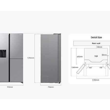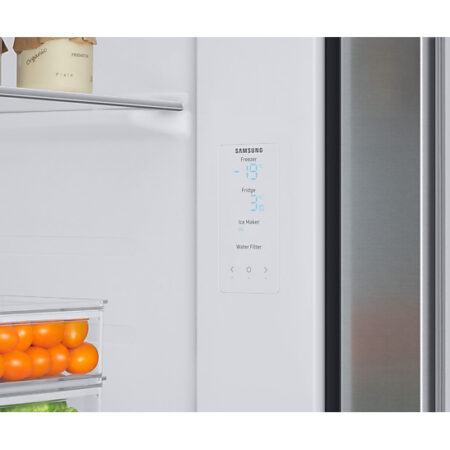 Samsung RH68B8830S9. Apparaatplaatsing: Vrijstaand, Productontwerp: Amerikaanse deur, Kleur van het product: Zilver. Klimaatklasse: SN-T, Geluidsemissieklasse: C, Geluidsniveau: 36 dB. Brutocapaciteit koelkast: 403 l, Soort lamp: LED. Vriezer positie: Ernaast, Vriescapaciteit: 15 kg/24u, Aantal sterren: 4*. Energie-efficiëntieklasse: F, Jaarlijks energieverbruik: 420 kWu, Energie-efficiëntieschaal: A tot G