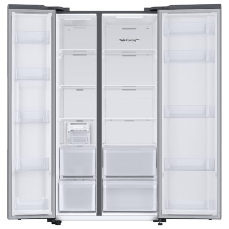 Samsung RS66A8101S9. Apparaatplaatsing: Vrijstaand, Productontwerp: Amerikaanse deur, Kleur van het product: Zilver. Klimaatklasse: SN-T, Geluidsemissieklasse: C, Geluidsniveau: 36 dB. Brutocapaciteit koelkast: 409 l. Vriezer positie: Ernaast, Vriescapaciteit: 16 kg/24u, Bewaartijd bij stroomuitval: 7 uur. Energie-efficiëntieklasse: E, Jaarlijks energieverbruik: 358 kWu, Energie-efficiëntieschaal: A tot G