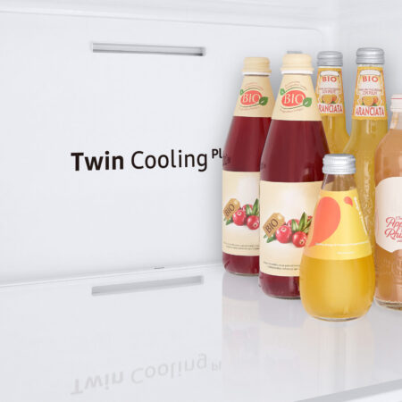 Zorgt ervoor dat etenswaren tot twee keer langer vers blijven[2] Twin Cooling Plus™ optimaliseert de temperatuur en luchtvochtigheid in de koelkast en vriezer dankzij twee onafhankelijke koelsystemen. Het zorgt ervoor dat voedingswaren beter bewaard blijven en smaak behouden door te voorkomen dat geurtjes uit de vriezer en het koelgedeelte zich met elkaar vermengen.