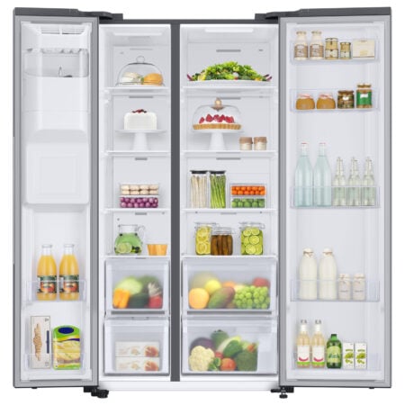 Smart Conversion geeft je meer flexibiliteit met 5 verschillende instellingen. Natuurlijk kan je de Amerikaanse koelkast in standaard modus gebruiken: links vriezer en rechts koelkast. Meer behoefte aan koelruimte? Zet het linker gedeelte om van vriezen naar koelen en je hebt een méga koelkast. Op vakantie? Zet het koelgedeelte uit en gebruik alleen de vriezer. Vriezer schoonmaken? Zet het vriesgedeelte makkelijk uit voor de grote schoonmaak. Even niet zoveel ruimte nodig? Gebruik alleen het vriesgedeelte als koelkast. Kortom, de RS8000A lijn maakt het leven een stuk gemakkelijker door de 5 verschillende instellingen. Er is er altijd wel één die past bij jouw huishouden.