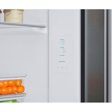 Samsung RS68A8820S9. Apparaatplaatsing: Vrijstaand, Productontwerp: Amerikaanse deur, Kleur van het product: Zilver. Klimaatklasse: SN-T, Geluidsemissieklasse: C, Geluidsniveau: 36 dB. Brutocapaciteit koelkast: 409 l, Soort lamp: LED. Vriezer positie: Ernaast, Vriescapaciteit: 15 kg/24u, Bewaartijd bij stroomuitval: 5 uur. Energie-efficiëntieklasse: F, Jaarlijks energieverbruik: 395 kWu, Energie-efficiëntieschaal: A tot G