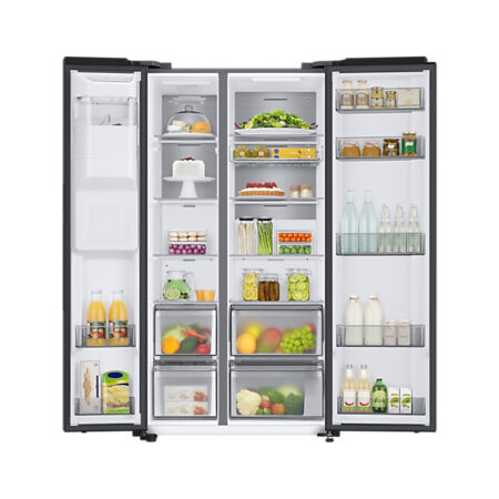 SamsungSamsung RS68A884CB1, Vrijstaand, Amerikaanse deur, Zwart, Binnenin, R600a, Gehard glas