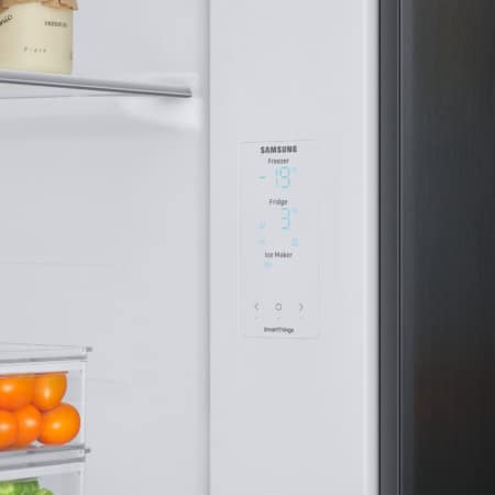 Samsung RS68CG853EB1. Apparaatplaatsing: Vrijstaand, Productontwerp: Amerikaanse deur, Kleur van het product: Antraciet. Totale nettocapaciteit: 634 l, Klimaatklasse: SN-T, Geluidsemissieklasse: C. Nettocapaciteit koelkast: 409 l. Nettocapaciteit vriezer: 225 l, Vriezer positie: Ernaast, Vriescapaciteit: 15 kg/24u. Energie-efficiëntieklasse: E, Jaarlijks energieverbruik: 351 kWu, Energie-efficiëntieschaal: A tot G