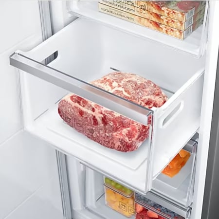 Vertrouw op supersnelle invriesprestaties. Als je op de Power Freeze-knop drukt, wordt er een stoot ijskoude lucht door de vriezer verspreid. Handig om bijvoorbeeld snel roomijs in te vriezen of ijsblokjes te maken.