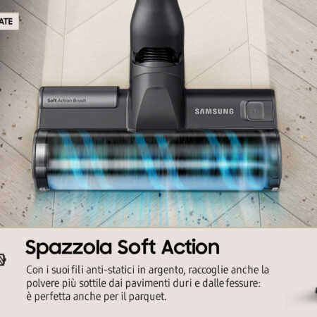 De Soft Action Brush[11] roteert ongeveer 1300 keer per minuut[12] en maakt korte metten met fijne stofdeeltjes op harde vloeren. Hij is geregen met zacht wol, inclusief antistatische zilverdraden. Daardoor maakt hij goed schoon in kieren. Met de 180 graden draaibare kop kun je iedere hoek schoonmaken. De grote roterende borstelrol (diameter van 59 mm) zorgt er ook voor dat haren van huisdieren niet vast komen te zitten in de borstel. Je kunt de roterende borstelrol gemakkelijk schoonmaken door hem in één klik los te koppelen.