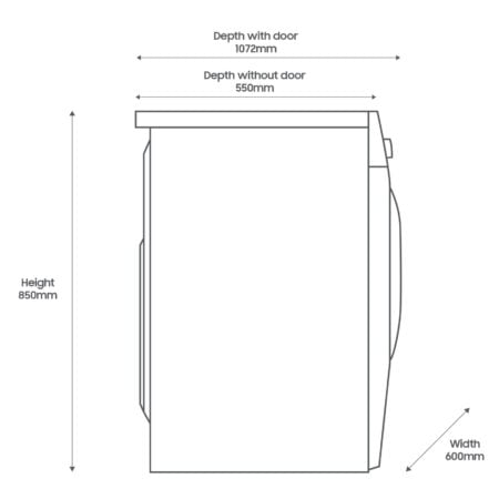 Samsung WW90T684DLH. Type lader: Voorbelading. Nominale capaciteit: 9 kg, Centrifuge-droger klasse: B, Geluidsniveau bij centrifugeren: 72 dB, Maximale centrifugesnelheid: 1400 RPM. Kleur van het product: Wit. Breedte: 600 mm, Diepte: 550 mm, Hoogte: 850 mm. Energie-efficiëntieklasse: A