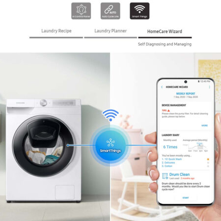 Samsung WW9GT754AWH/S2, Voorbelading, 9 kg, B, 72 dB, 1400 RPM, A