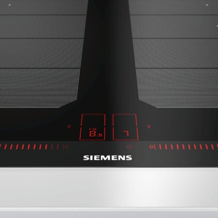 Siemens EX675LXC1E. Kleur van het product: Zwart, Roestvrijstaal, Apparaatplaatsing: Ingebouwd, Type kookplaat: Inductiekookplaat zones. Sudder brander/kookzone: 3700 W, Normale brander/kookzone: 3700 W. Soort bediening: Touch, Controle positie: Boven voorzijde. Aangesloten lading (elektrisch): 7400 W, AC-ingangsspanning: 220-240 V, AC-ingangsfrequentie: 50 – 60 Hz. Breedte: 602 mm, Diepte: 520 mm, Hoogte: 51 mm