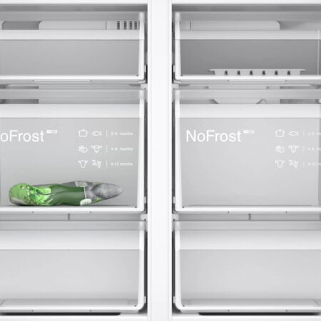 Je hoeft je vriezer niet meer te ontdooien om je bevroren eten goed te bewaren en het apparaat energiezuinig te houden. De noFrost-technologie verwijdert vocht en houdt de lucht droog. Hierdoor kan zich geen ijs vormen op de wanden van je vriezer en ingevroren etenswaren. Dat bespaart jou de moeite van het ontdooien. Bovendien bespaart het energie, want een ijsvrije vriezer werkt zuiniger.