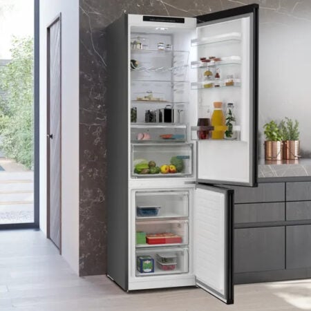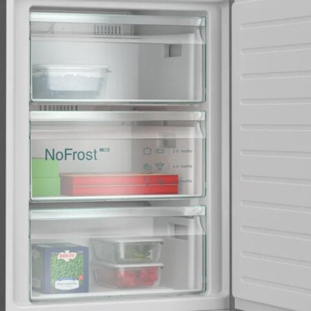 Siemens iQ300 KG39N2XAG. Totale nettocapaciteit: 103 l. Deurscharnieren: Rechts. Klimaatklasse: ST-T, Geluidsniveau: 29 dB. Nettocapaciteit koelkast: 260 l, Multi-luchtwegsysteem (koelkast), Koelkast binnenverlichting, Aantal planken koelkast: 5. Nettocapaciteit vriezer: 103 l, No Frost (vriezer). Vers zone compartiment. Energie-efficiëntieklasse: A, Jaarlijks energieverbruik: 112 kWu. Kleur van het product: Geborsteld staal