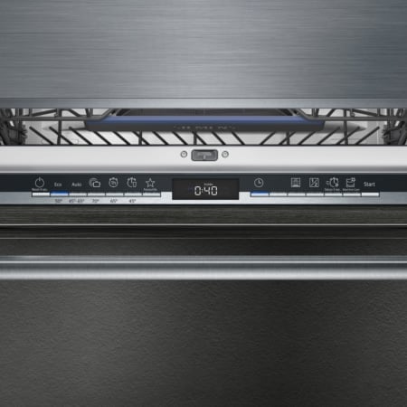 Siemens iQ300 SE63HX60CE. Apparaatplaatsing: Volledig ingebouwd, Productafmeting: Volledige grootte (60 cm), Kleur bedieningspaneel: Zwart. Aantal couverts: 14 couverts, Geluidsemissieklasse: B, Geluidsniveau: 44 dB. Voetenverstelling: 6 cm. Energie-efficiëntieklasse: D, Waterconsumptie per cyclus: 9,5 l, Energieverbruik per 100 cycli: 85 kWu. Breedte: 598 mm, Diepte: 550 mm, Hoogte: 815 mm