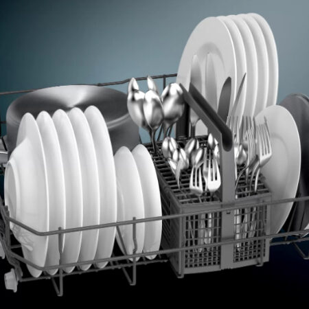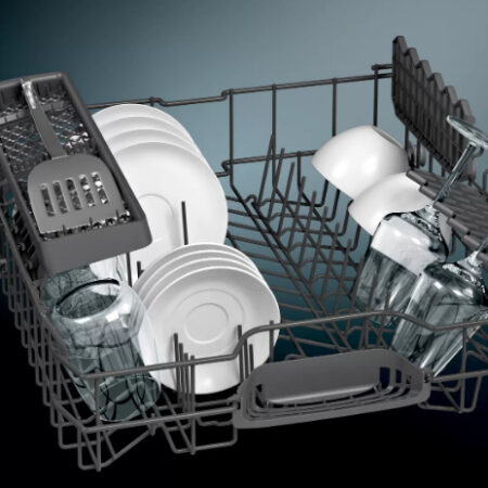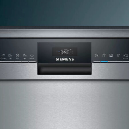 Siemens iQ300 SN43HS41TE. Apparaatplaatsing: Aanrecht, Productafmeting: Volledige grootte (60 cm), Deurkleur: Roestvrijstaal. Aantal couverts: 12 couverts, Geluidsemissieklasse: B, Geluidsniveau: 44 dB. Energie-efficiëntieklasse: E, Waterconsumptie per cyclus: 9,5 l, Energieverbruik per 100 cycli: 92 kWu. Breedte: 598 mm, Diepte: 573 mm, Hoogte: 815 mm. Jaarlijks waterverbruik: 2660 l